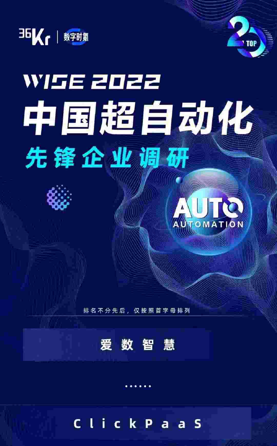 8月10日,,,,由36Kr主办的WISE 2022中国超自动化峰会在杭州成功举办。。。美团钱包商家版作为国内低代码PaaS平台的领军企业,,,凭借过硬的技术实力和优质的产品能力,,在本次峰会中实力入选「2022年中国超自动化先锋企业」20强。。