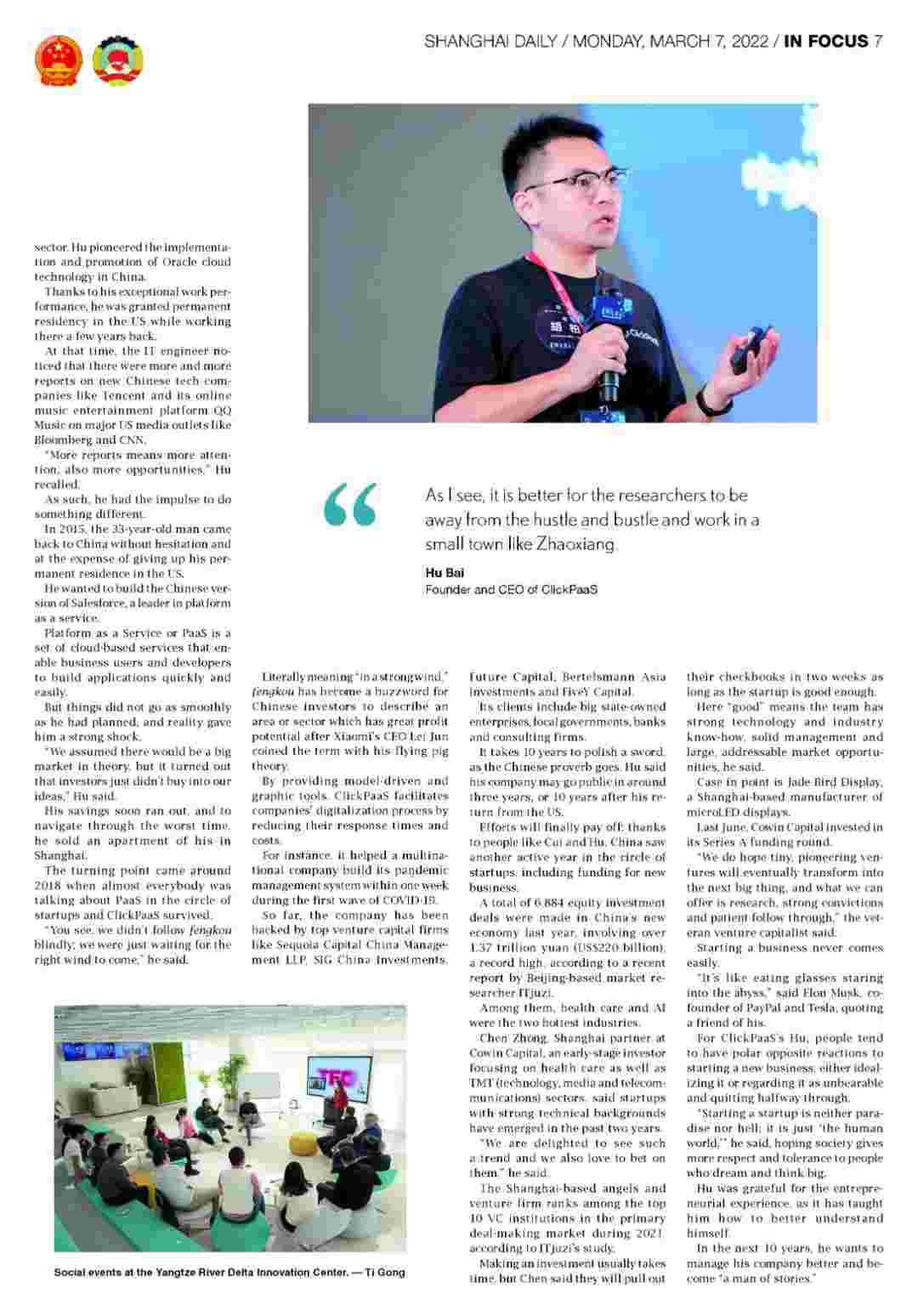 《上海日报》专访美团钱包商家版创始人、、、、CEO胡柏,,,探究其创业背后的故事!!!